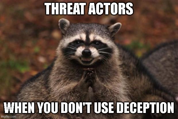 Too many organizations rely too much on out of the box configurations of their security tools. It’s especially evident with EDR. There are few tools that are truly set it and forget it. If you don’t create any custom alerts and you don’t review your existing alerts for effectiveness and completeness, you’re leaving room for attackers. And by the way, one of the best things you can do from a security monitoring perspective, is to setup deception assets. Whether you’re trying to better detect enumeration/recon, lateral movement, privilege escalation or even credential access… Deception can be used very effectively for all those use cases. If you want to see how deception can be used at various stages of an attack, watch the recording of my deception webinar.